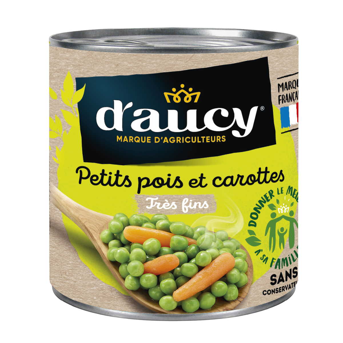 Our peas and carrots are grown in open fields in France, harvested in season and at good maturity. We put them in a can on the same day to preserve all their qualities.